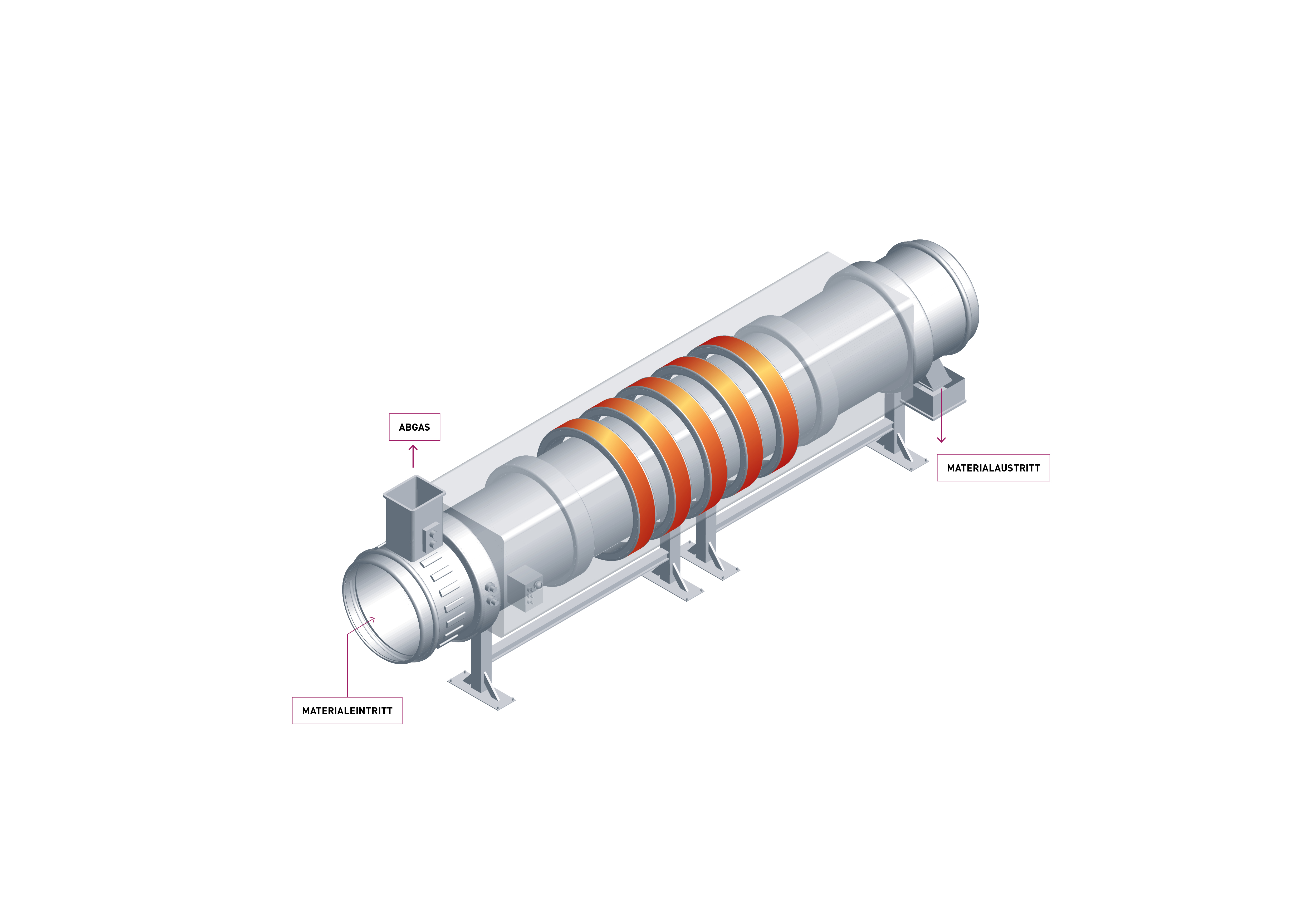 Mit Drehrohröfen (auch Trommelofen genannt) werden thermische Verfahren zum Kalzinieren, Sintern, Pyrolysieren und Brennen sowie zum Oxidieren und Reduzieren durchgeführt. So können Pulver, Granulate, Suspensionen und Formkörpern behandelt werden. Die Anlagen bestehen aus einem Drehrohr sowie stationären Materialein- und Materialaustrittgehäusen. Durch die konstante Bewegung des Rohrs wird das Material durchmischt, sodass eine homogene Behandlung erfolgt. Man unterscheidet zwischen direkt und indirekt beheizten Drehrohröfen, die je nach den Anforderungen Ihres Projektes eingesetzt werden.